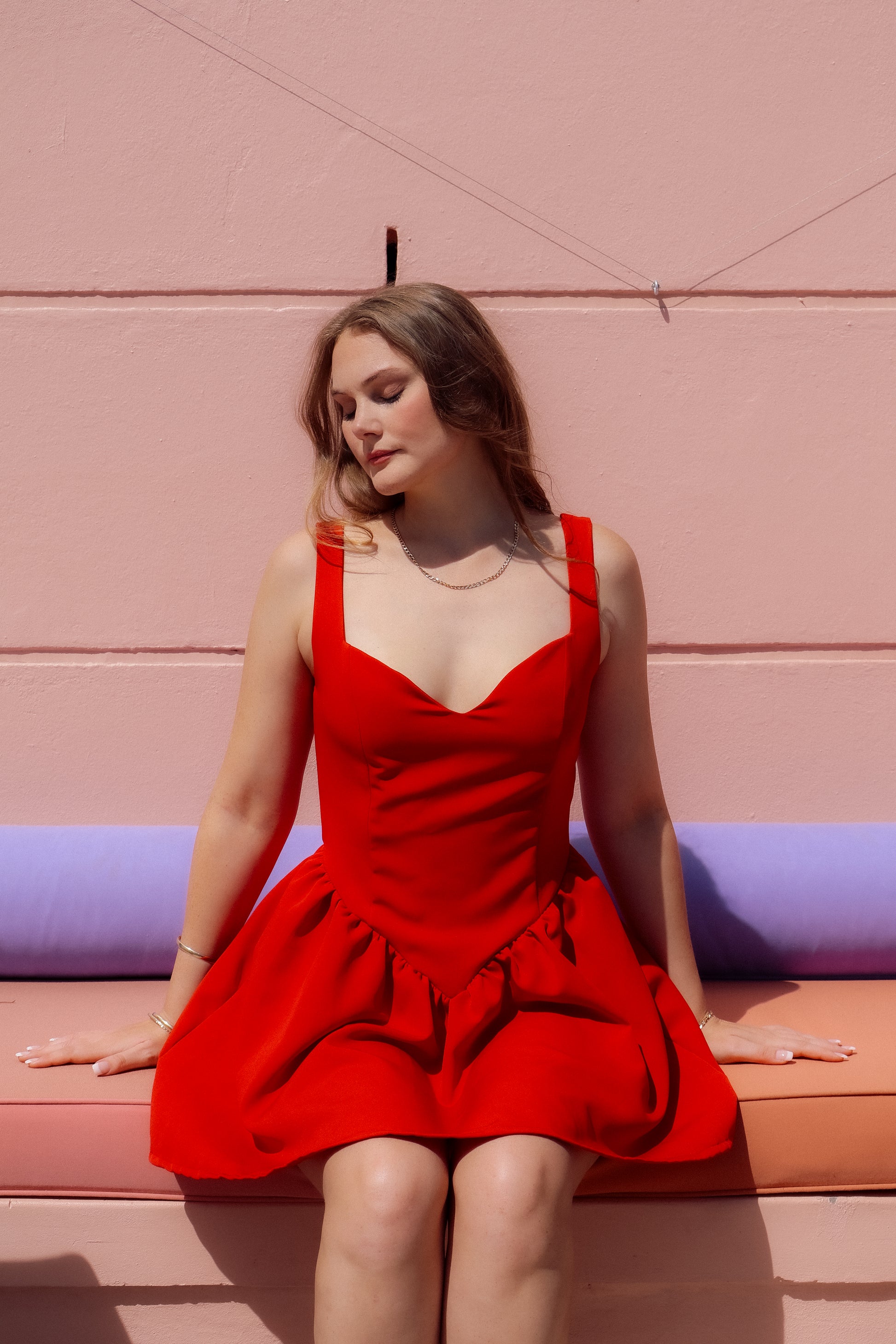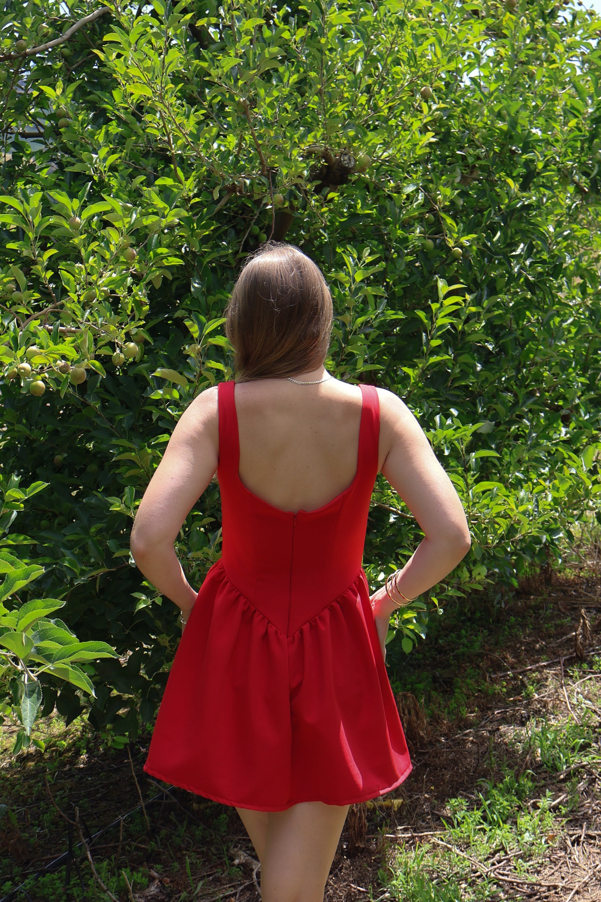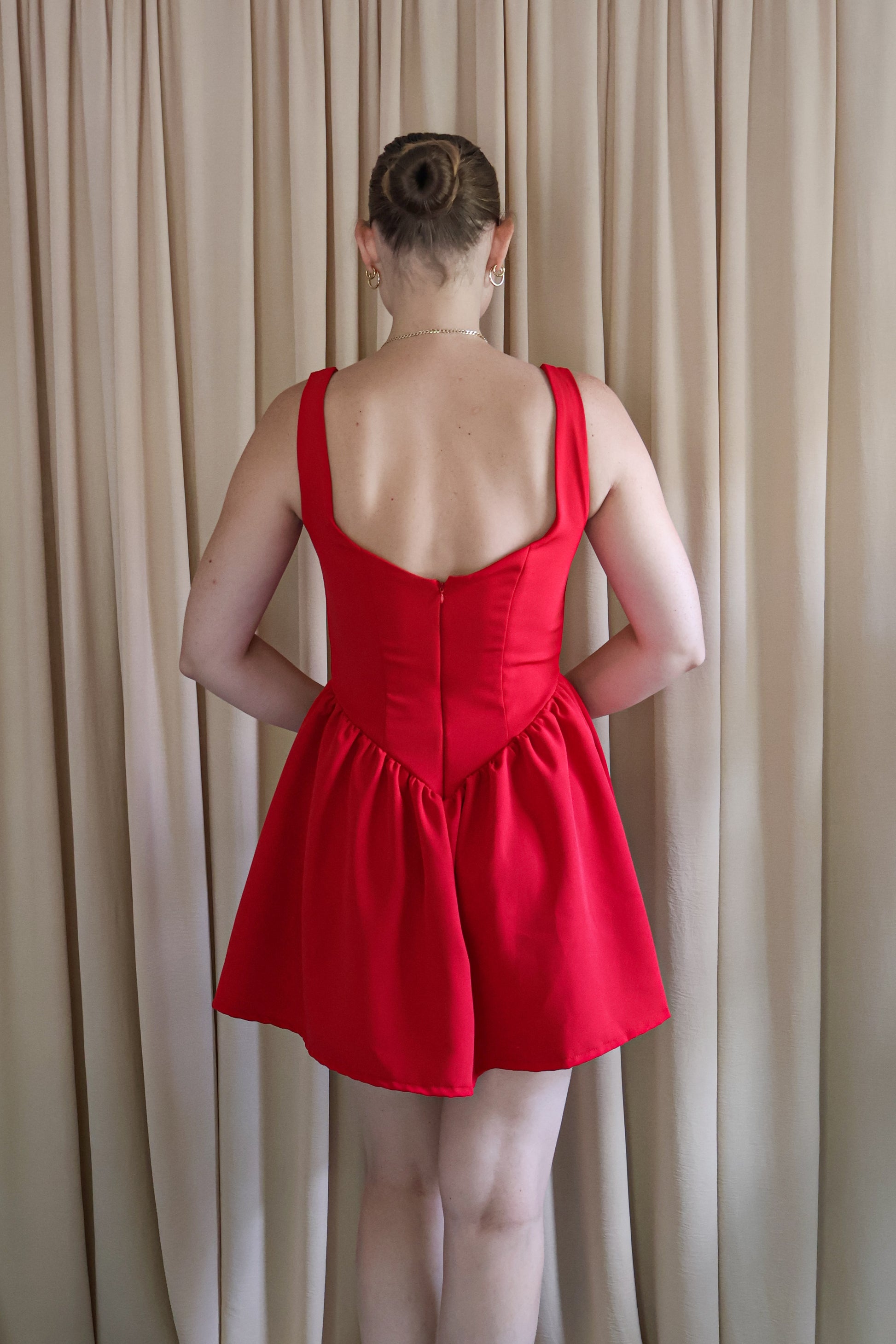 One for the red lovers to add to your core wardrobe staples. With a sweetheart neckline, drop cinched waist, and for the final touch, pockets! all crafted in a soft, lightweight cotton stretch blend for comfort and durability.